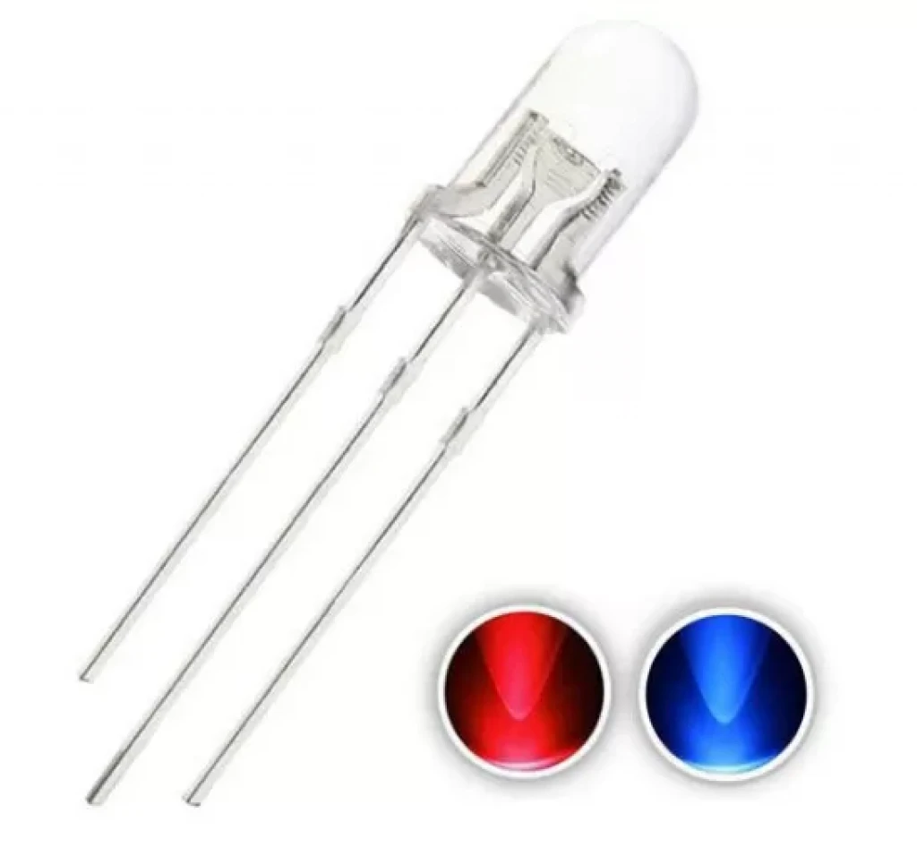 3mm LED Ultra Parlak Mcd Mavi - Kırmızı Ortak Katot Çift Renkli Şeffaf