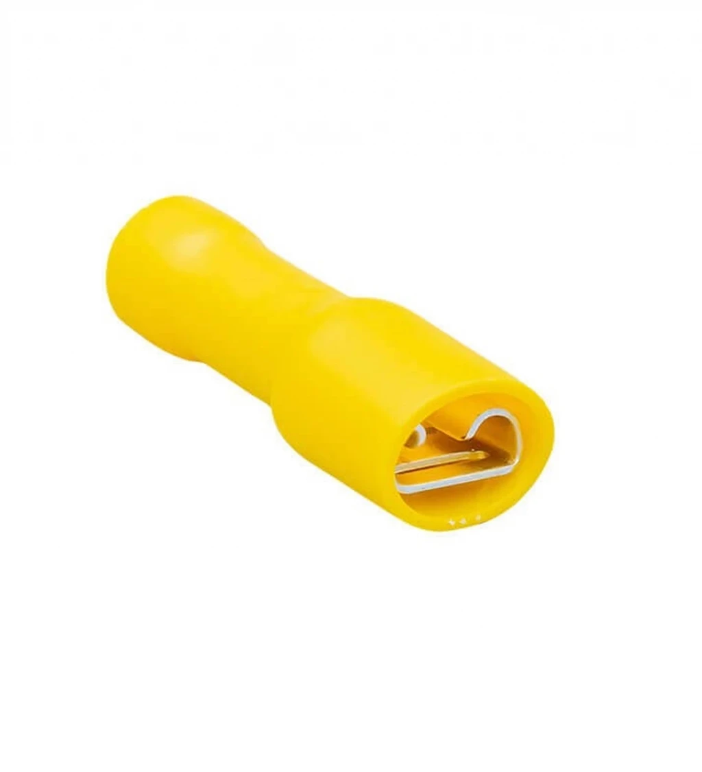 Gwest GFFD-5638 Tam İzoleli Dişi Faston Tip İzoleli Kablo Ucu , pirinç ve kalay kaplı yapıda olup izolasyonu PVC ile sağlanmaktadır. Maksimum çalışma sıcaklığı 75° 300Volt arasındadır.
